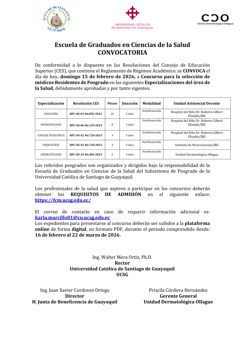 Coordinador del Posgrado de Dermatología Universidad Católica de Santiago de Guayaquil